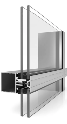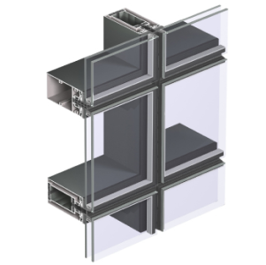 Полуструктурное остекление. Эта система объединяет прочность каркасно-ригельной конструкции и привлекательность структурного остекления. Здесь стеклопакеты закрепляются на несущий профиль с помощью тонких прижимных штапиков, минимально перекрывающих внешний вид стекла. В отличие от полностью структурного остекления, система допускает использование крупных стеклопакетов и интеграцию открывающихся элементов.